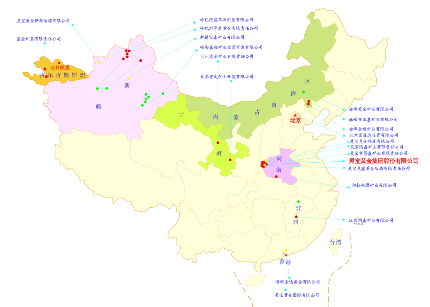 礦山資源分別位于中國河南、新疆、內蒙古、甘肅、江西及吉爾吉斯共和國